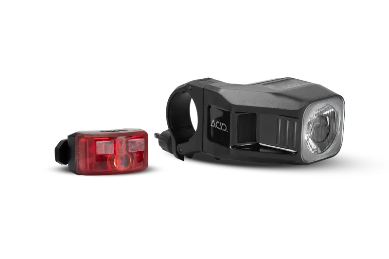 Состав: Мощный передний фонарь (500-1000 лм) + задний фонарь с датчиком торможения