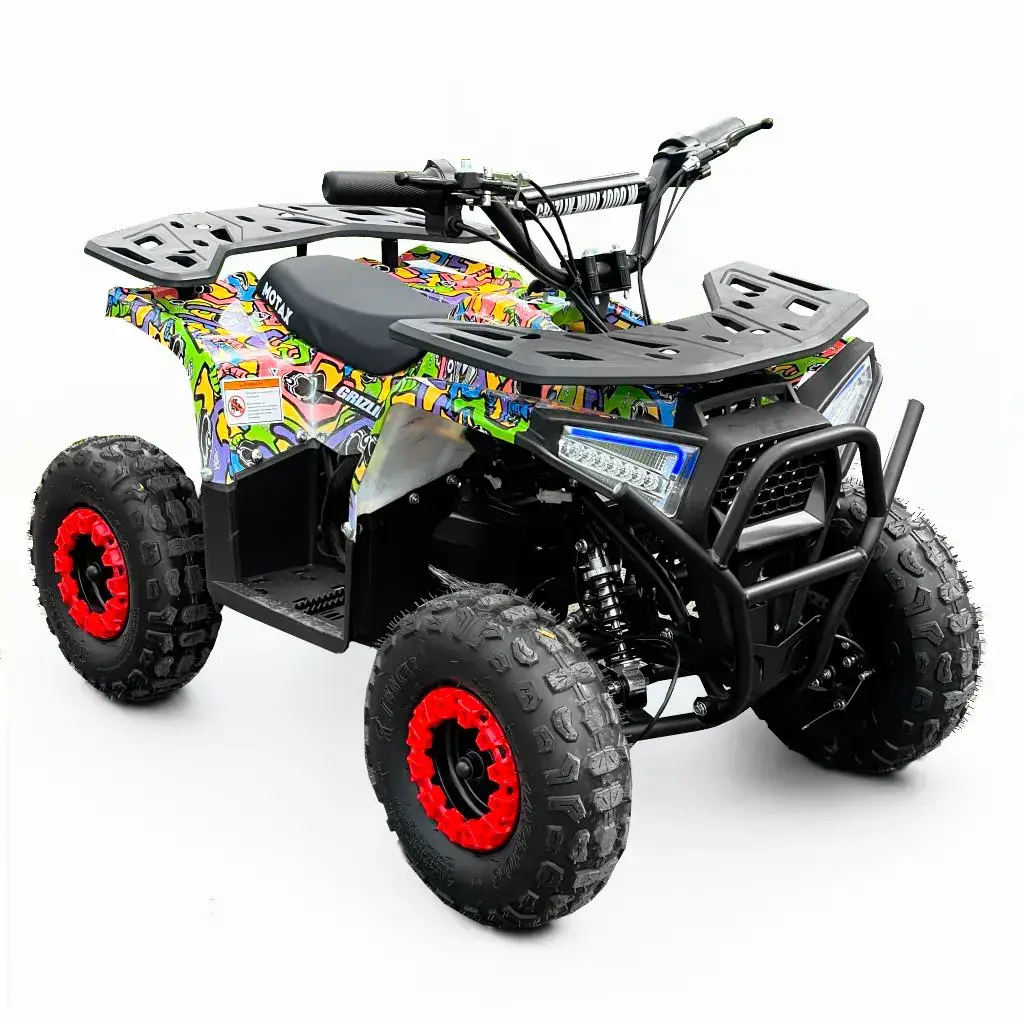 Электроквадроцикл MOTAX GRIZLIK MIDI E1000 BW — это современная и экологичная модель, созданная для детей в возрасте от 5 до 9 лет (при росте от 100 до 130 см). Его яркий дизайн и полнофункциональная комплектация делают его идеальным транспортным средством для первых самостоятельных приключений и активного отдыха на свежем воздухе.