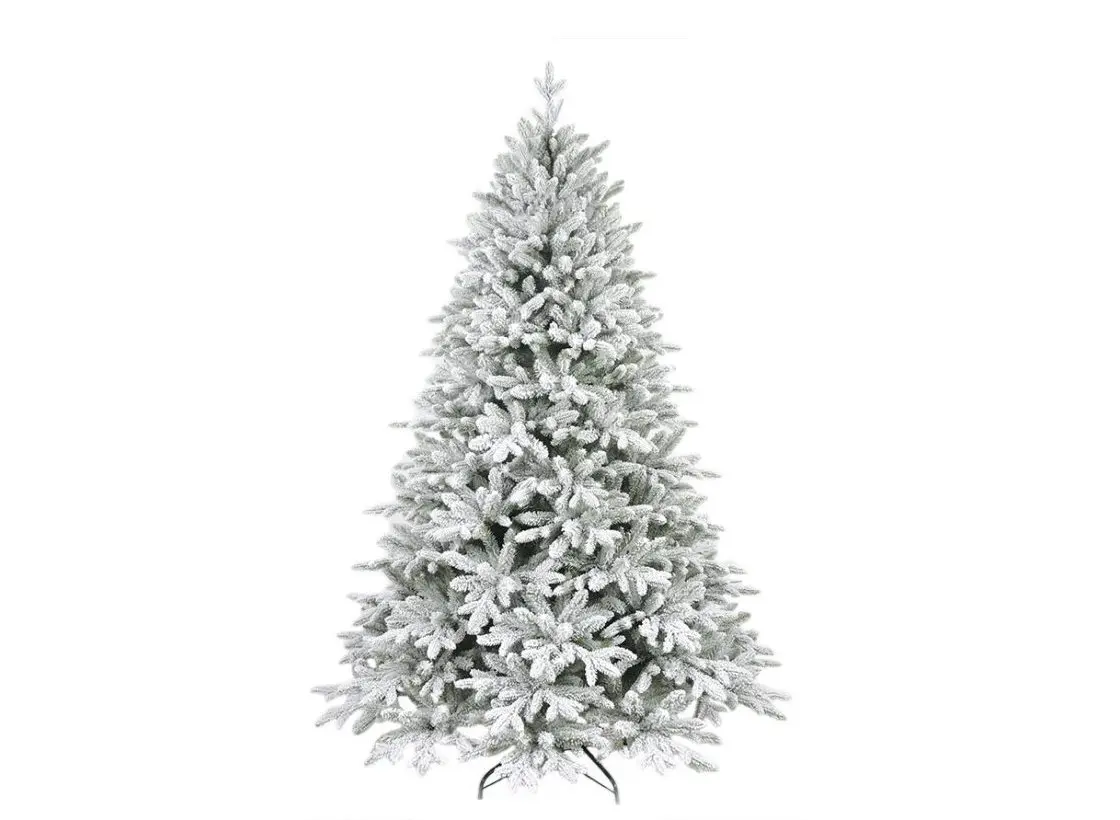 Волшебный зимний антураж: Искусное белое напыление на густой зеленой хвое создает эффект только что занесенной снегом лесной красавицы. Это готовое праздничное решение, которое выглядит дорого и элегантно.