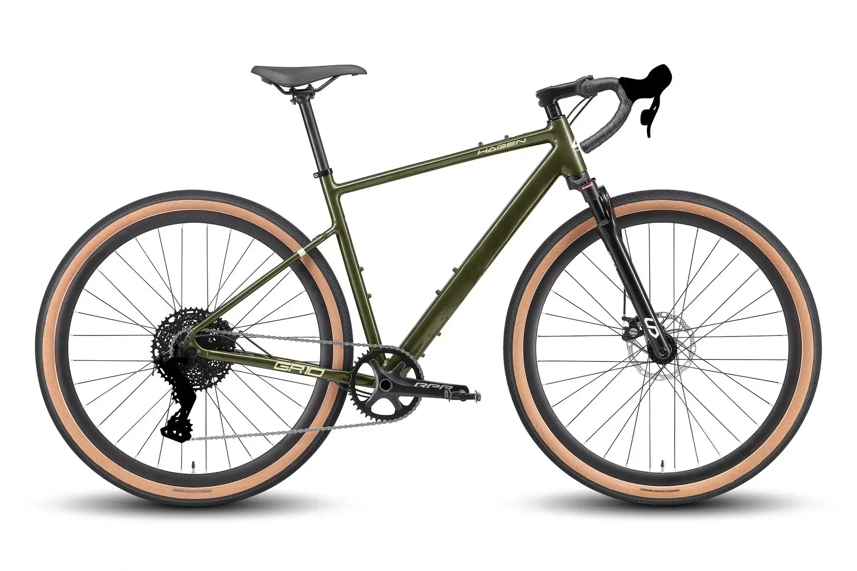 Hagen GR10 Air зеленый хаки металлик – это привлекательный, динамичный, легкий и эргономичный гравийник. Изменить скоростной режим можно при помощи переключателя MicroShift Sword RD-G7005M 10 spd. Велосипед укомплектован системой Prowheel RPP-FD16S-TT10SP, 40T, 170/172,5/175mm, Hollow. Технологичная рама байка изготовлена из алюминиевого сплава. Дисковые механические тормоза велосипеда Tektro MD-550 Mira 160/160mm обеспечивают контролируемое торможение. Вилка GR30 AIR обеспечивает хорошую устойчивость и управляемость. Седло Selle Royal Gravel, анатомическое спроектировано таким образом, чтобы свести к минимуму возникновение неправильной посадки. Крепкие, устойчивые к восьмёркам колёса и качественные покрышки Chaoyang Gravel GP 700x45C.