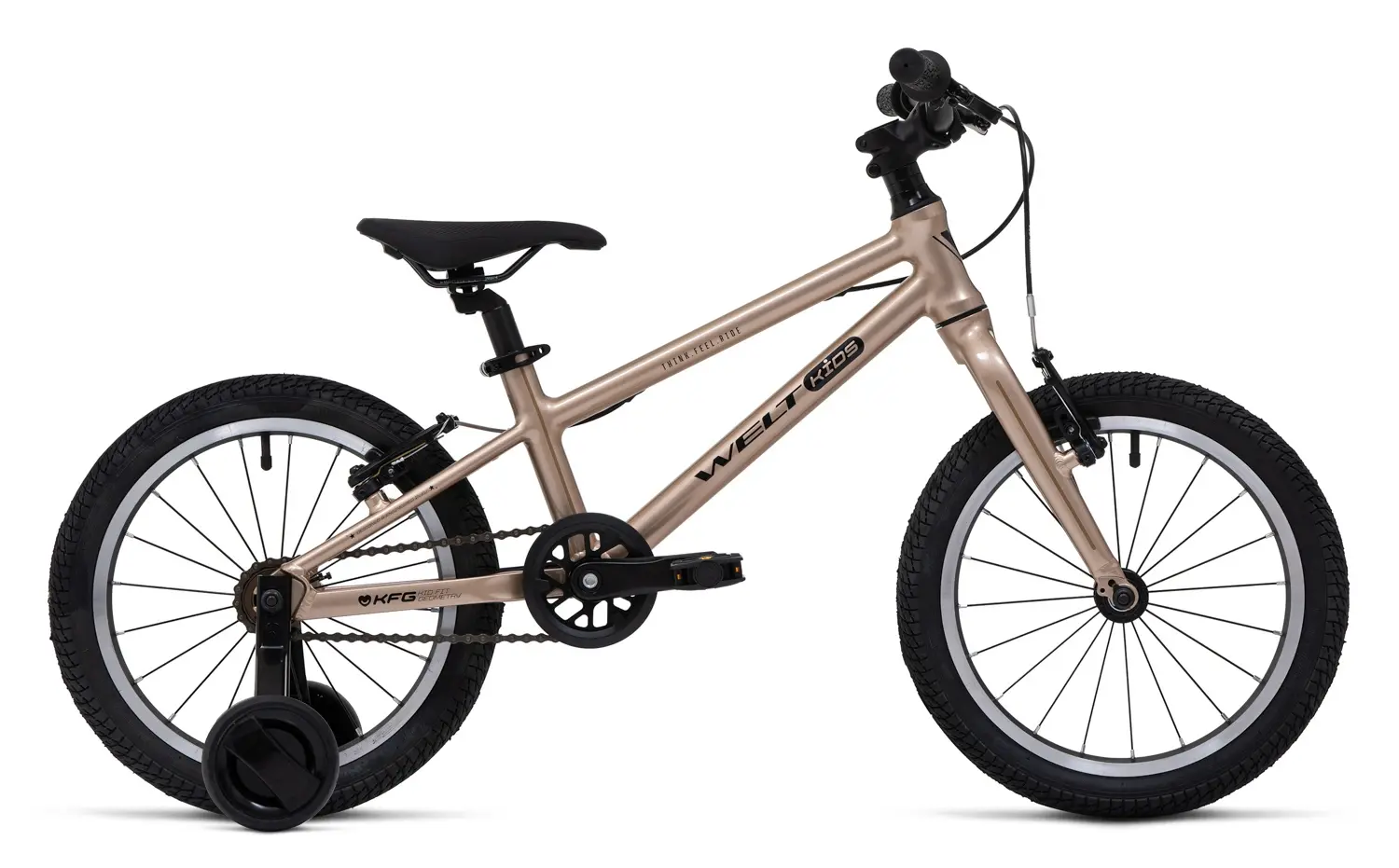 Детский велосипед Welt Teddy 16 представлен в двух цветах: Milky Pink (розовый) и Rocky Beige (бежевый). Он оснащён прочной алюминиевой рамой и подходит для детей, которые только начинают осваивать двухколёсный транспорт. Вот основные характеристики велосипеда: