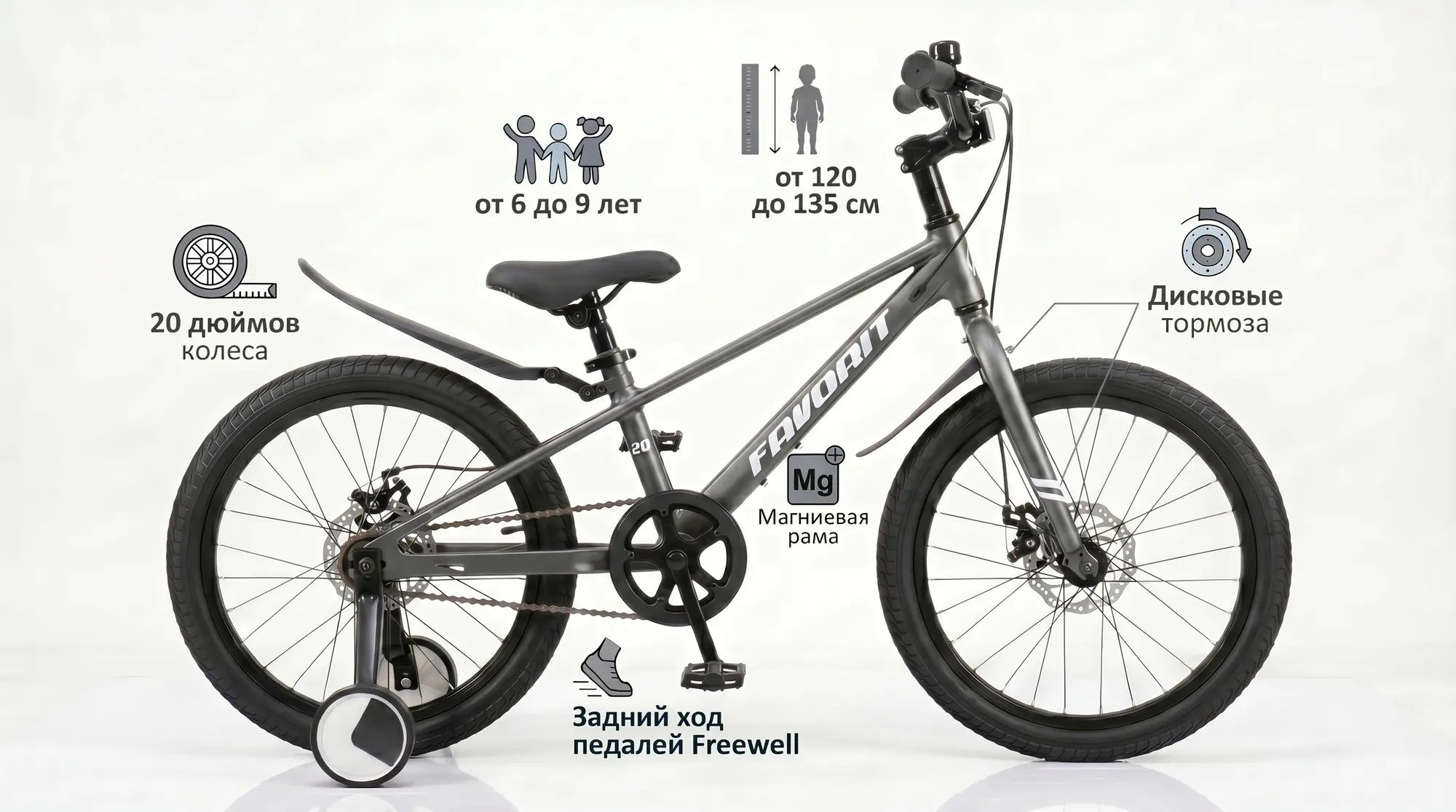 Favorit Tornado 20 — это первый серьезный шаг к взрослому велоспорту. Магниевая рама и дисковые тормоза редко встречаются у конкурентов в этом ценовом сегменте, делая модель лучшей инвестицией в активное и безопасное детство.