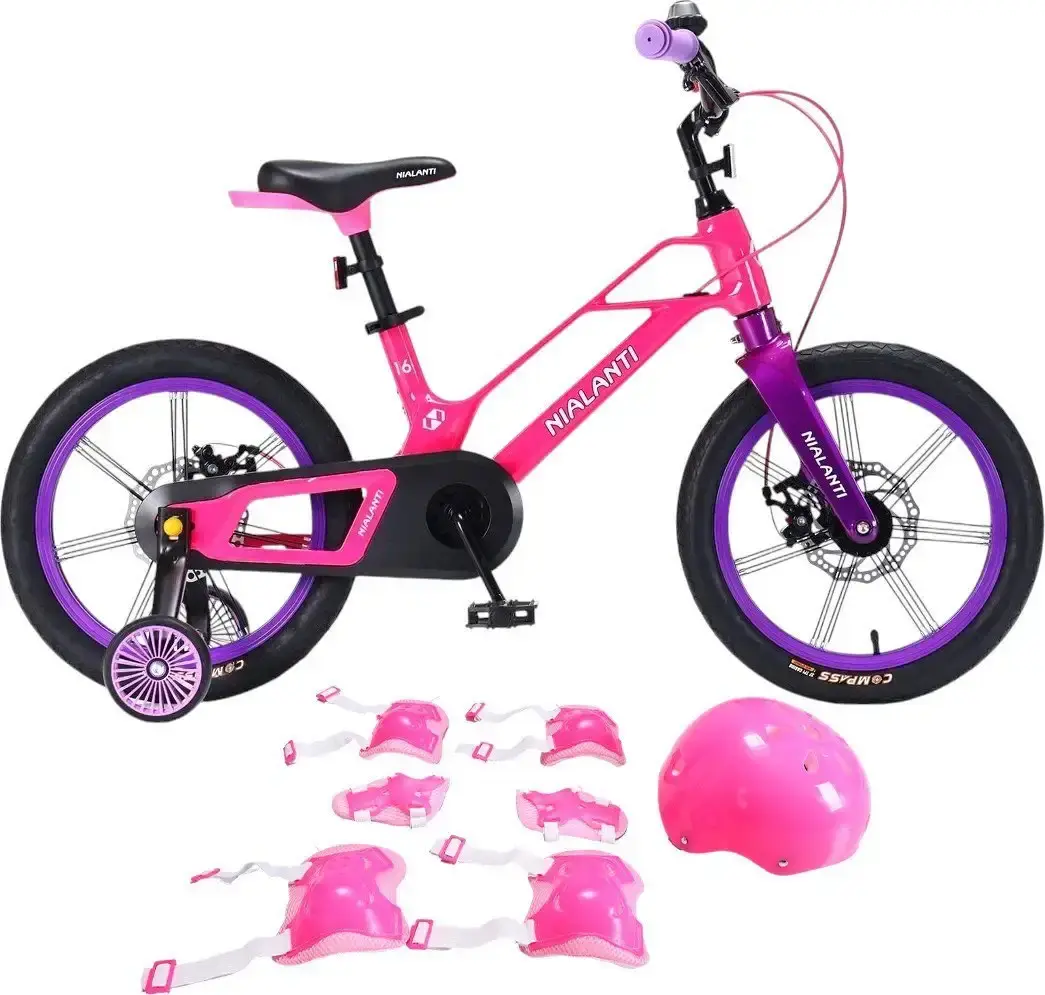 Детский велосипед Nialanti Magic 16 MD розовый с комплектом защиты