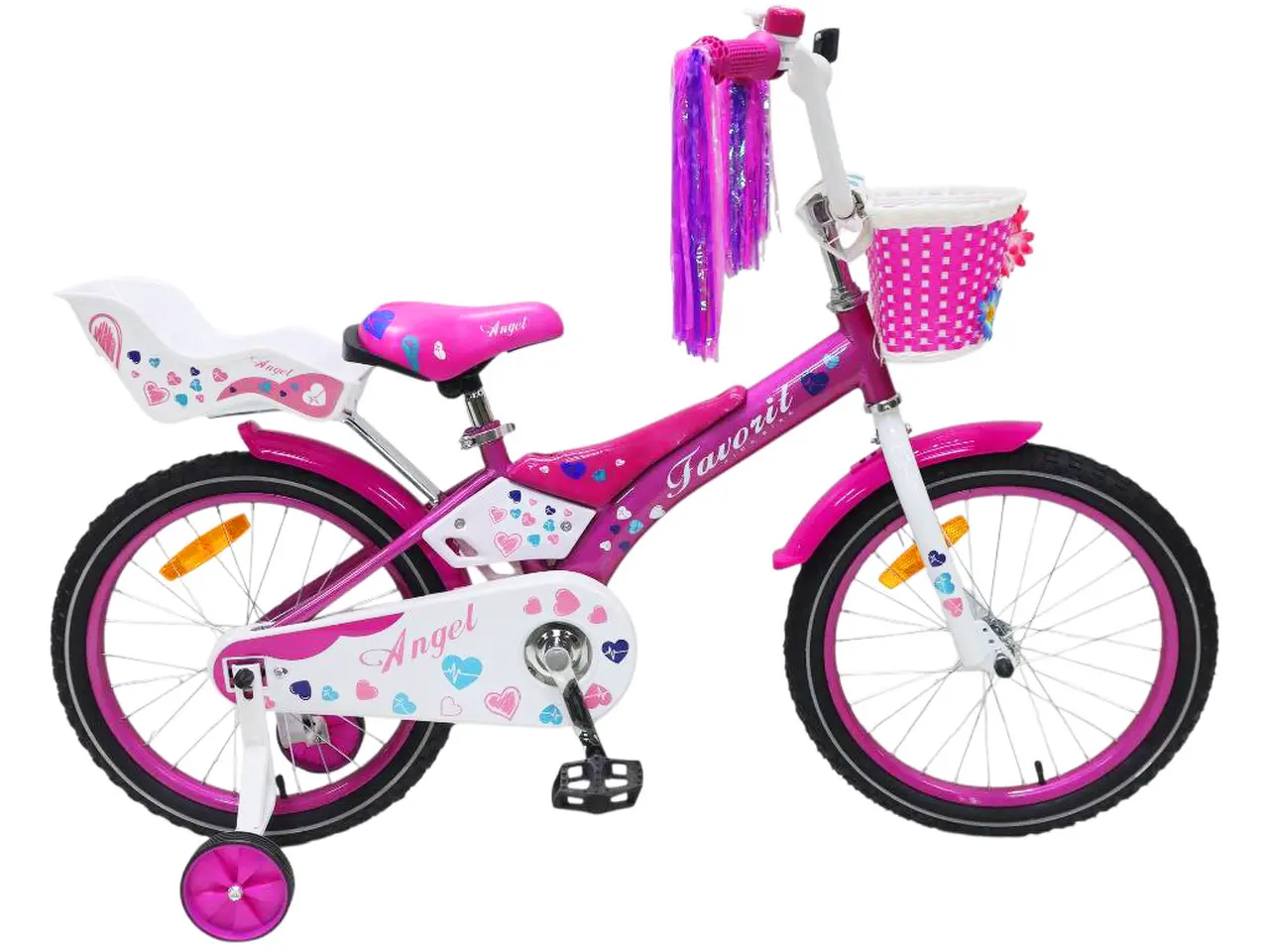 Пришло время для настоящих приключений! Детский велосипед Favorit Angel 18 в фиолетовом цвете — это идеальный выбор для активной и стильной девочки 5-8 лет, которая уже уверенно стоит на двух колёсах и готова покорять новые дистанции. С увеличенными колёсами, ещё более выразительным дизайном и проверенной надёжностью, этот велосипед станет символом её растущей самостоятельности и неудержимой энергии.