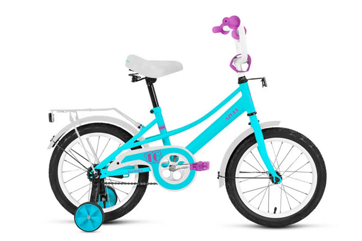 Детский велосипед Forward Azure 16, предназначенный для детей в возрасте от пяти до семи лет, с жесткой стальной вилкой, одной скоростью. Привлекательный дизайн, надежная сборка, легкость и отличная управляемость – это еще не все плюсы данной модели. Велосипед оснащен ограничителем поворота руля – специальной функцией, которая не позволит переднему колесу совершить поворот под большим углом, тем самым обезопасит от падения. Обратите внимание на багажник с зажимом – обязательный атрибут любого детского велосипеда, ведь как же еще перевозить свои игрушки и другие нужные мелочи во время прогулок? Для комфортных поездок по сложной трассе либо по пересеченной местности велосипед оборудован двумя дополнительными съемными колесами, благодаря которым маленький наездник будет чувствовать себя увереннее.