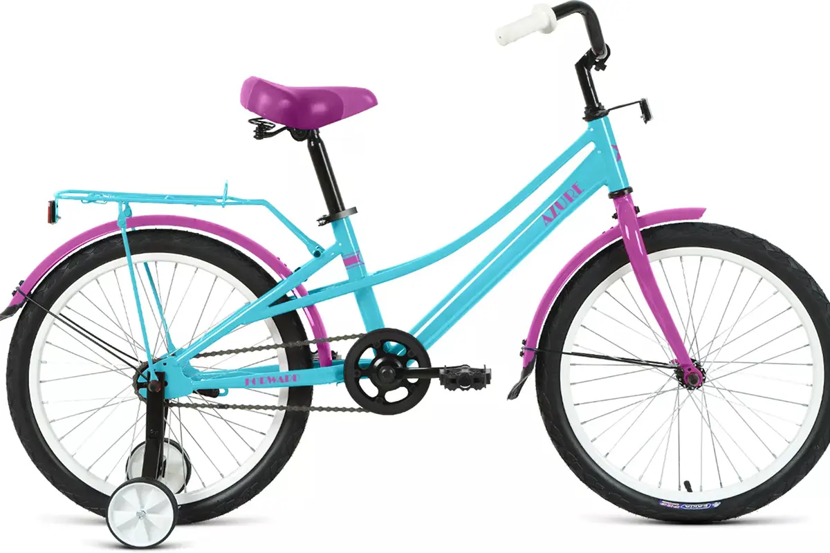 Детский велосипед forward azure 18, предназначенный для детей в возрасте от пяти до семи лет, с жесткой стальной вилкой, одной скоростью. Привлекательный дизайн, надежная сборка, легкость и отличная управляемость – это еще не все плюсы данной модели. Велосипед оснащен ограничителем поворота руля – специальной функцией, которая не позволит переднему колесу совершить поворот под большим углом, тем самым обезопасит от падения. Обратите внимание на багажник с зажимом – обязательный атрибут любого детского велосипеда, ведь как же еще перевозить свои игрушки и другие нужные мелочи во время прогулок? Для комфортных поездок по сложной трассе либо по пересеченной местности велосипед оборудован двумя дополнительными съемными колесами, благодаря которым маленький наездник будет чувствовать себя увереннее.