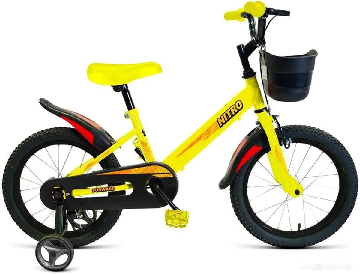 Детский велосипед Forward Nitro 18 (2024) станет отличными вариантом для обучения катанию. Прочная рама из сплава Hi-ten имеет низкую посадку, а стальная вилка выдержит любые нагрузки. Для комфортной настройки посадки велосипед оснащен регулируемым рулём по высоте и наклону, так же комфортное сиденье настраиваемое по высоте. Колеса с универсальными надувными покрышками имеют накатистые втулки с насыпными подшипниками. Система привода на 1 скорость полностью защищена от попадания посторонних предметов. Для остановки и контроля скорости имеется тормоз ножного типа. В дополнение велосипед комплектуется с завода вспомогательными колёсами для обучения и крыльями (брызговиками).