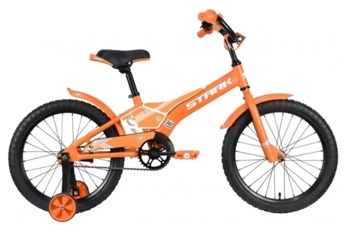 Детский велосипед Stark Tanuki 18 Boy в оранжевом цвете — это надежный и простой в использовании велосипед для детей. Он оснащен прочной алюминиевой рамой и стальной вилкой, что делает его легким (вес всего 10,5 кг) и устойчивым. Велосипед подходит для детей, которые только начинают осваивать двухколесный транспорт.