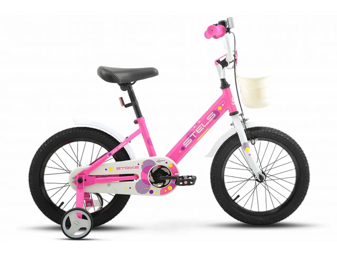 Детский велосипед Stels Strike VC 16" в розовом цвете — это яркая и надежная модель для детей в возрасте 4-6 лет с ростом от 105 см. Вот его основные характеристики: