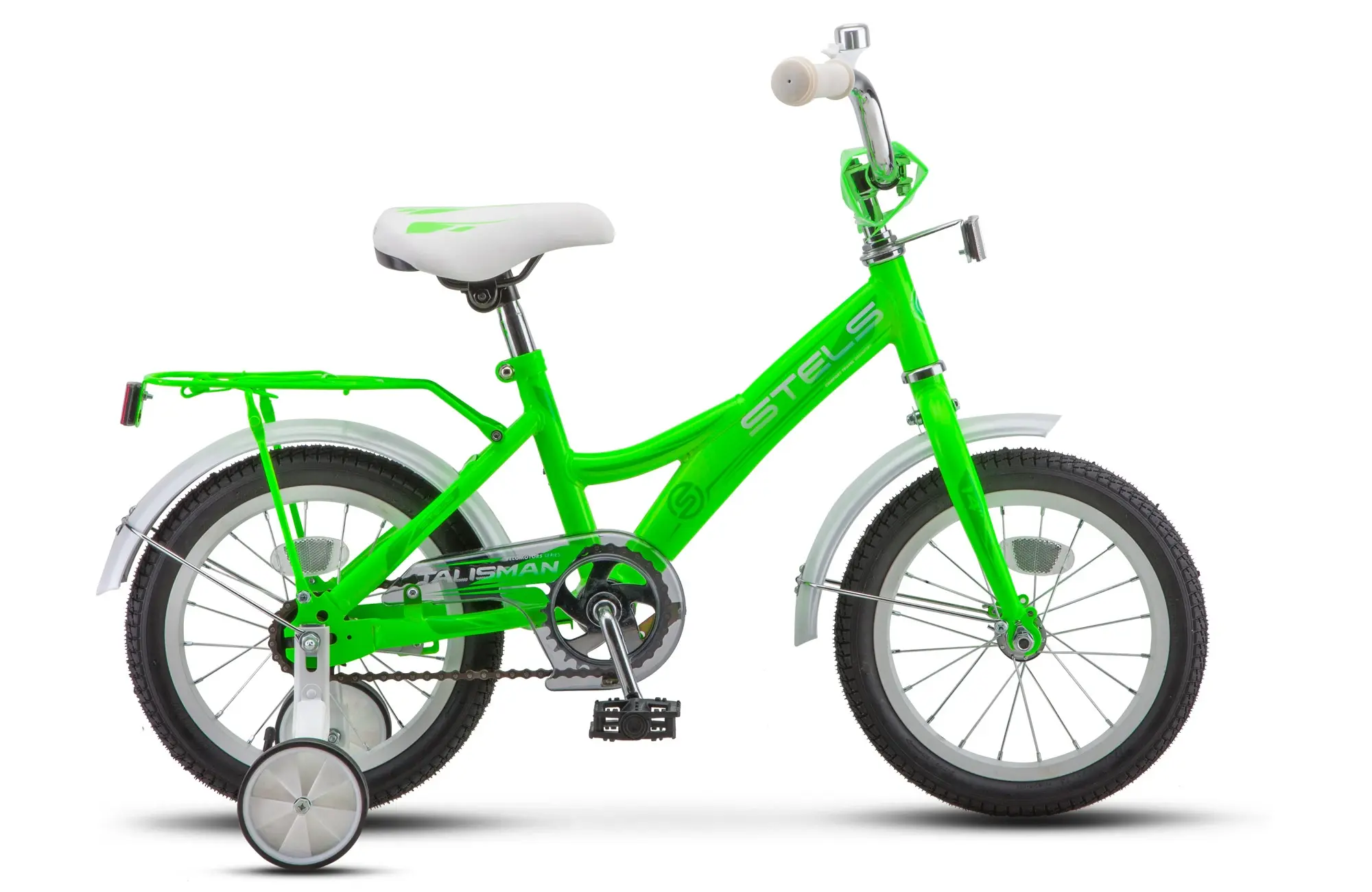 Детский велосипед Stels Talisman 14 Z010 в салатовом цвете предназначен для детей ростом 96–110 см (возраст примерно 3–5 лет). Это прочная и надежная модель с классической конструкцией, обеспечивающей комфорт и безопасность во время катания.