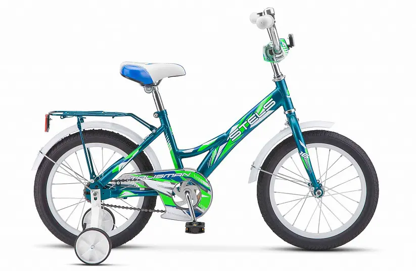 Если вам нужен не дорогой, красивый и надежный байк для ребенка, то рекомендуем приобрести данную модель. Велосипед Stels Talisman 16 отлично подойдет для начинающих райдеров, так как поможет хорошо освоить двух колесный транспорт. Он достаточно прочный и легкий, благодаря качественной стальной раме. Ее геометрия рассчитана специально для детей с ростом от 100до 115см, центр тяжести максимально занижен, а посадка практически прямая. Именно так проще держать равновесие на маленькой скорости движения, а чтобы научится этому, в базе стоят фирменные боковые колеса. Торможение осуществляется с помощью классического ножного тормоза, который намного предпочтительнее для детей. Так же порадует наличие таких аксессуаров как крылья и багажник, которые отлично подходят по дизайну.