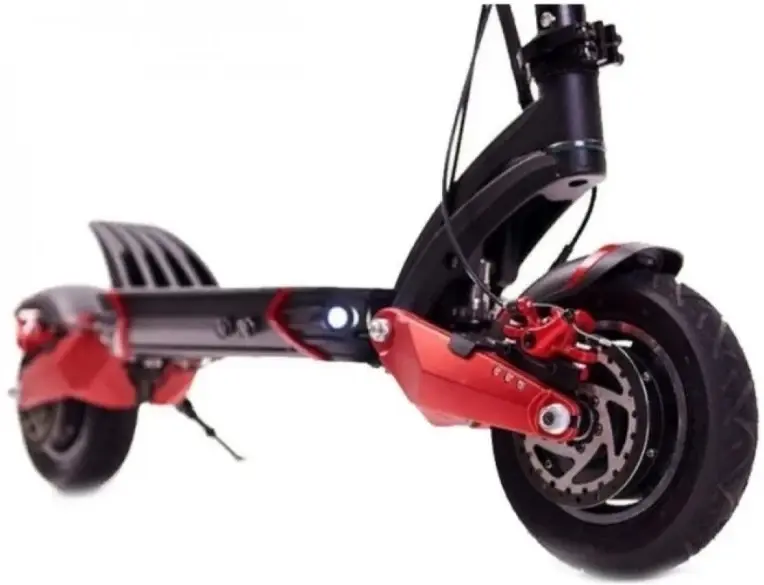 - Красная клавиша работает в режимах Single и Dual. Первый режим запускает задний привод, второй отвечает за полный привод. Кататься на полном удобнее, так как электросамокат лучше разгоняется до максимальной скорости в 60 км/час.