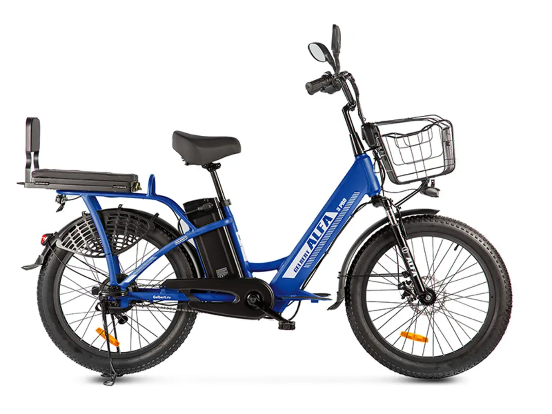 - Электровелосипед Gelbert ALFA 3 PRO с цельной рамой, передней корзиной и сиденьем для пассажира вместо багажника станет отличным выбором для пожилых и обычных райдеров.