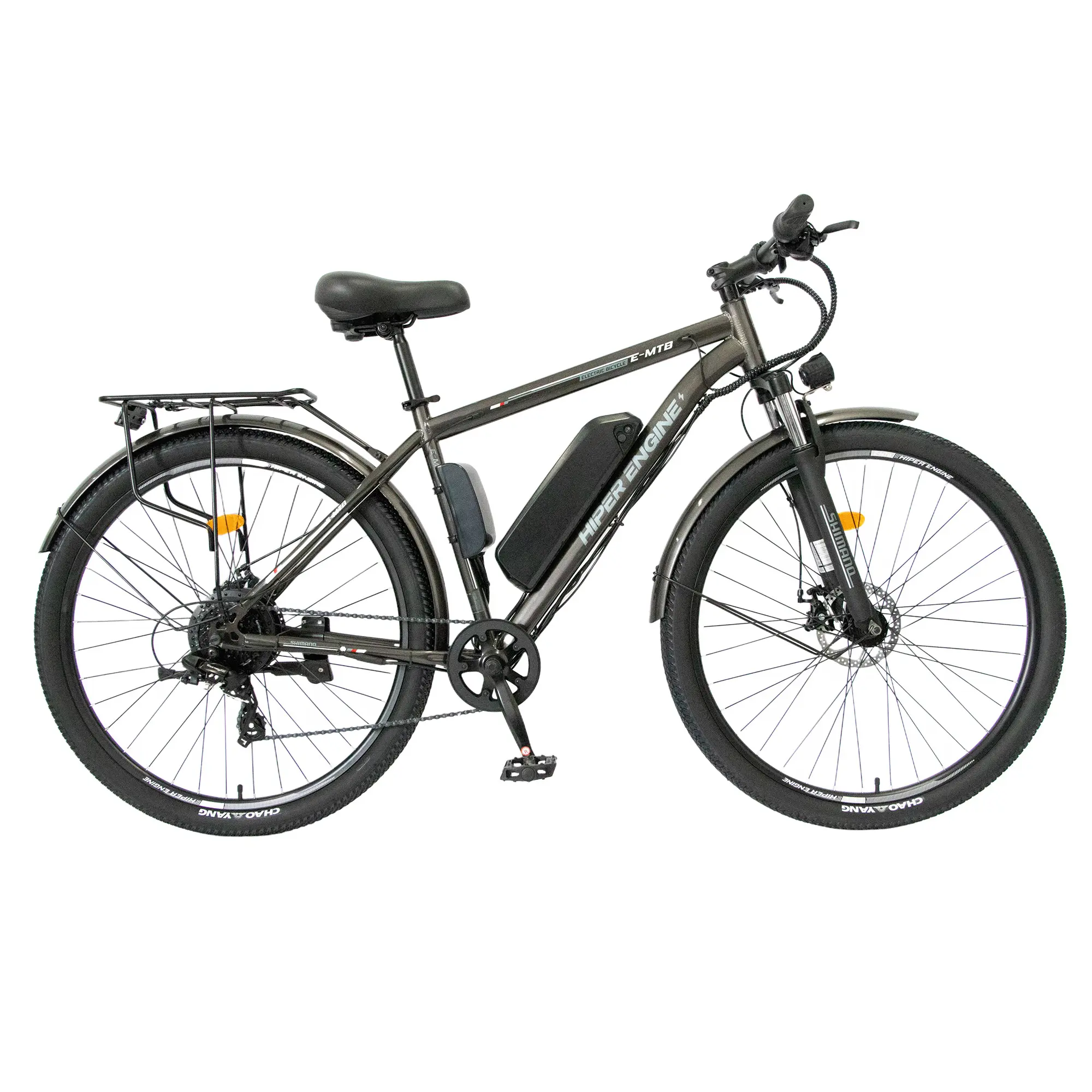 HIPER ENGINE MTB S5 GRAPHITE — это серьезный инструмент для тех, кто не признает ограничений. Мощный двигатель, увеличенный запас энергии, большие колеса и амортизация делают его одним из самых способных электровелосипедов в линейке для эксплуатации в жестких условиях. Модель предлагает удачный симбиоз классической конструкции горного велосипеда с современной и производительной электрической начинкой.