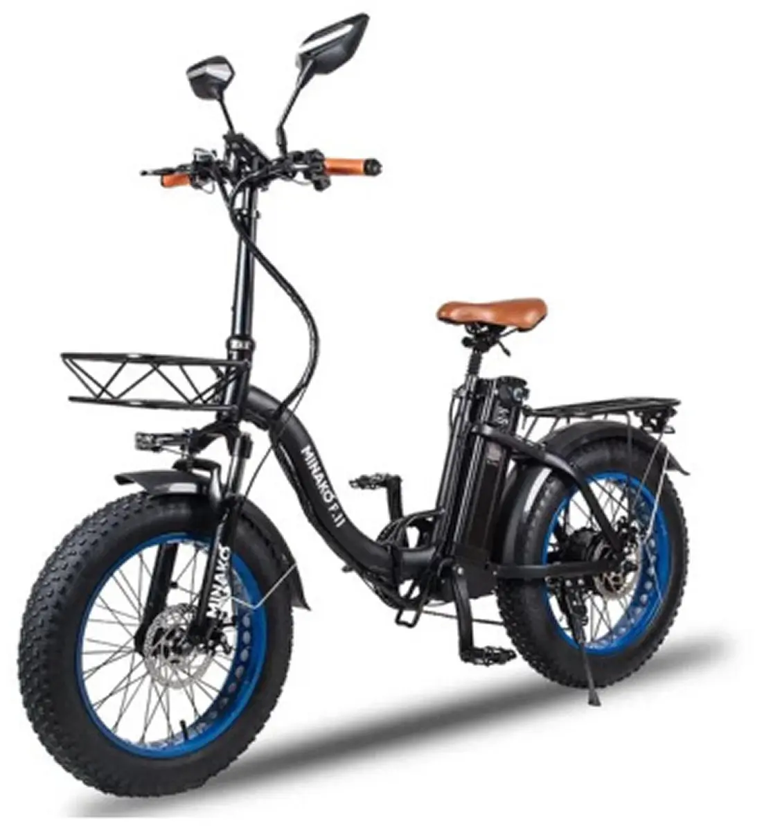 Электровелосипед Minako F 11 - новая свежая модель, с мощным двигателем, высокопроходимыми 20-дюймовыми колесами, багажником и передней корзиной. Велосипед сочетает в себе важнейшие качества: стиль, надежность, динамичность и функциональность. Мотор 500W позволяют набирать скорость до 45 км/ч. Емкий аккумулятор держит заряд до 35 км без подзарядки. Безопасное и плавное торможение обеспечивает дисковая механическая тормозная система. Время зарядки занимает не более 6 часов. Электровелосипед выдерживает нагрузку до 120 кг, при это вес самого велосипеда всего 25 кг.