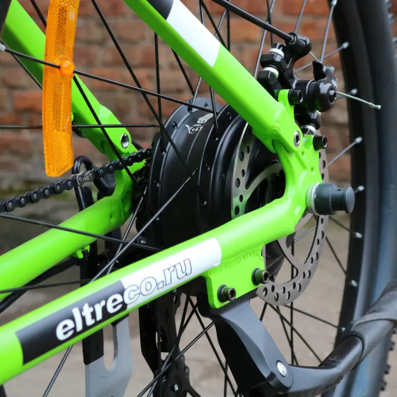 Новый фирменный электромотор Eltreco мощностью 350 Ватт в сочетании с новым контроллером и литий-ионным аккумулятором 36 Вольт / 10,4 Ампер-часов позволяют развить скорость до 35 км/ч и совершать велопрогулки до 50 км на одном заряде.