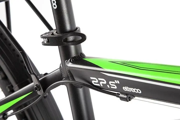 Спортивный электровелосипед с оборудованием начального класса Shimano, 6 скоростей. Технические особенности: алюминиевая рама, амортизационная вилка, двойные алюминиевые обода, дисковые механические тормоза Eltreco, электродвигатель Eltreco 350W, аккумулятор Li-ion 36V/10Ah, дисплей Eltreco, багажник, пластиковые крылья, подножка. Подходит для активной езды по различным дорогам и пересеченной местности. Грузоподъемность - до 110 кг. Пробег на одной зарядке - до 50 км. Максимальная скорость - 35 км/ч. Диаметр колес - 27,5 дюймов. Вес - 21,5 кг.