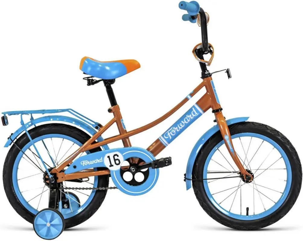 Детский велосипед forward azure 18, предназначенный для детей в возрасте от пяти до семи лет, с жесткой стальной вилкой, одной скоростью. Привлекательный дизайн, надежная сборка, легкость и отличная управляемость – это еще не все плюсы данной модели. Велосипед оснащен ограничителем поворота руля – специальной функцией, которая не позволит переднему колесу совершить поворот под большим углом, тем самым обезопасит от падения. Обратите внимание на багажник с зажимом – обязательный атрибут любого детского велосипеда, ведь как же еще перевозить свои игрушки и другие нужные мелочи во время прогулок? Для комфортных поездок по сложной трассе либо по пересеченной местности велосипед оборудован двумя дополнительными съемными колесами, благодаря которым маленький наездник будет чувствовать себя увереннее.