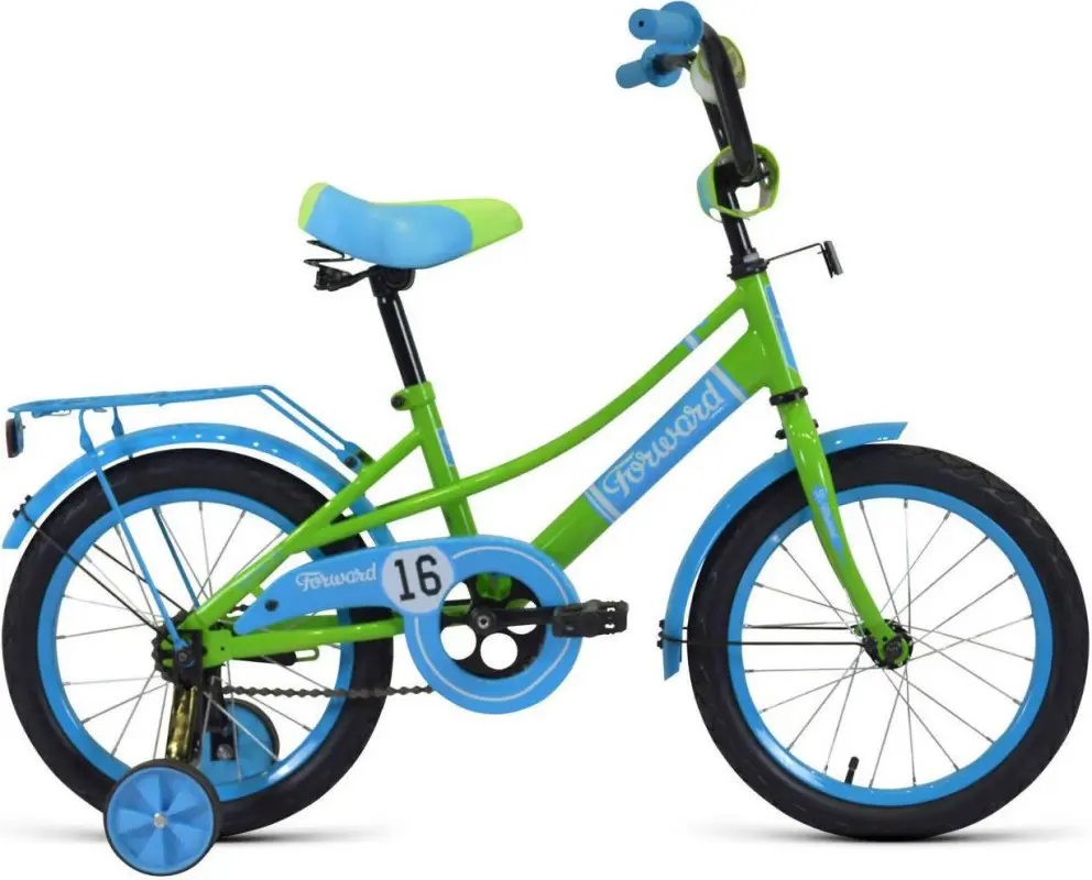 Детский велосипед forward azure 18, предназначенный для детей в возрасте от пяти до семи лет, с жесткой стальной вилкой, одной скоростью. Привлекательный дизайн, надежная сборка, легкость и отличная управляемость – это еще не все плюсы данной модели. Велосипед оснащен ограничителем поворота руля – специальной функцией, которая не позволит переднему колесу совершить поворот под большим углом, тем самым обезопасит от падения. Обратите внимание на багажник с зажимом – обязательный атрибут любого детского велосипеда, ведь как же еще перевозить свои игрушки и другие нужные мелочи во время прогулок? Для комфортных поездок по сложной трассе либо по пересеченной местности велосипед оборудован двумя дополнительными съемными колесами, благодаря которым маленький наездник будет чувствовать себя увереннее.
