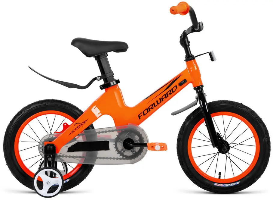 Действительно классная детская модель для вашего ребёнка. Велосипед Forward Cosmo 12 отлично подойдет для начинающих райдеров, так как поможет хорошо освоить двух колесный транспорт. Он достаточно прочный и легкий, благодаря качественной магниевой раме. Именно так проще держать равновесие на маленькой скорости движения, а чтобы научится этому, в базе стоят фирменные боковые колеса. Торможение осуществляется с помощью классического ножного тормоза, который намного предпочтительнее для детей.