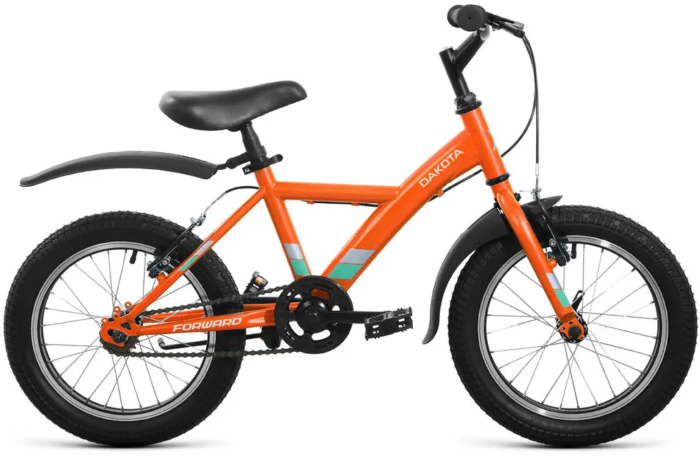 Если вам нужен не дорогой, красивый и надежный байк для ребенка, то рекомендуем приобрести данную модель. Forward Dakota 16 ярко-оранжевый/бирюзовый отлично подойдет для начинающих райдеров, так как поможет хорошо освоить двух колесный транспорт. Он достаточно прочный и легкий, благодаря качественной алюминиевой раме. Ее геометрия рассчитана специально для детей с ростом от 105до 120см, центр тяжести максимально занижен, а посадка практически прямая. Именно так проще держать равновесие на маленькой скорости движения.