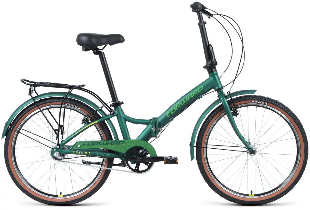 Новейшая разработка: складной велосипед Forward Enigma 24 3.0 зеленый! Такой быстрый, красивый и компактный городской велосипед поможет вам мгновенно добраться до пункта назначения, минуя пробки и общественный транспорт. Конструкция модели — универсал, она будет удобна для всех. Кататься на такой модели можно начиная с двенадцати лет. Торможение осуществляется при помощи ободного механического тормозов. Вилка жесткая. Колеса обладают размером в 24 дюймов. У модели присутствует 3 скоростей.