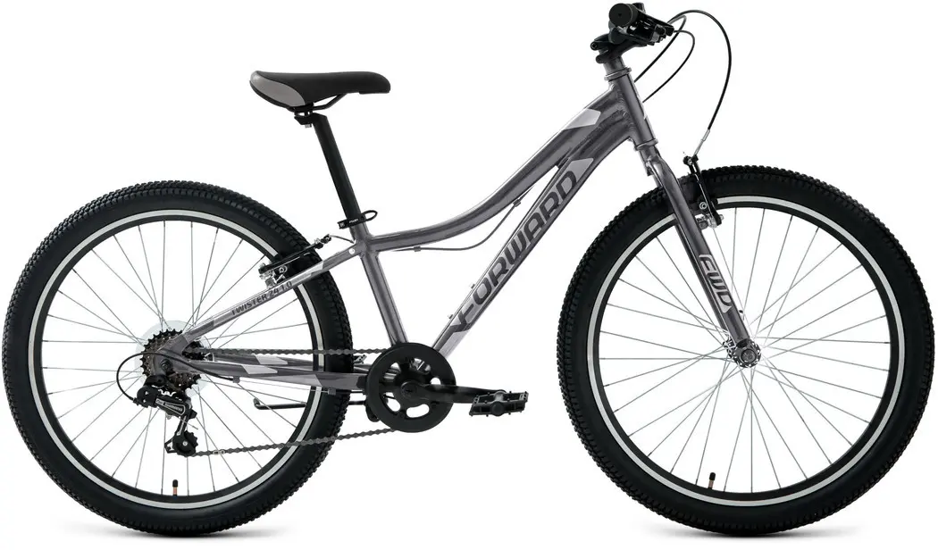 Действительно классная подростковая модель. Велосипед Forward Twister 24" наделен отличной комплектацией, а так же очень стильным, современным дизайном, который однозначно понравиться любому человеку. Стоит обратить внимание на хорошее техническое оснащение: лёгкая алюминиевая рама, оборудование известной фирмы Shimano, 7 скоростей, амортизационная вилка, 24-дюймовые колеса на двойных алюминиевых ободах, устойчивых к образованию «восьмерок», прочные покрышки Forward и надежные тормоза типа V-brake. Удобная посадка и мягкое сидение сделают длительные поездки не утомительными, а крылья защитят от грязи и брызг.