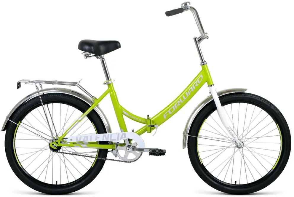Велосипед Forward VALENCIA 1.0 - это компактный складной байк. Стальная рама и жесткая вилка для прочности конструкции, простой механизм складывания, регулировка по высоте руля и сидения для максимально комфортной посадки,. Модель комплектуется защитными крыльями, подножкой и багажником. Диаметр колес - 24" дюймов.