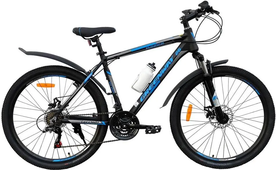 Горный велосипед Greenway Insider 26" – это универсальная модель начального уровня с классической мужской рамой и 26-дюймовыми колесами, предназначенная для велопрогулок по хорошим дорогам и загородным трассам с плохим покрытием и частыми подъемами и спусками. Модель комплектуется качественным навесным трансмиссионным оборудованием и надежными дисковыми тормозами.Конструкция рамыGreenway Insider имеет классическую геометрию рамы и представляет собой треугольник, образуемый с помощью основной утолщенной трубы, подседельной трубы и дополнительной горизонтальной трубы, которые в совокупности образуют прочную конструкцию, выдерживающую большие перегрузки. В качестве материала применяется прочный стальной сплав. Байк выпускается с тремя различными рамами по размеру – 17, 18,5 и 20 дюймов, что означает возможность подбора максимально комфортного варианта с нужной ростовкой для людей с ростом от 155 см до 185 см.ТрансмиссияGreenway Insider многоскоростной байк, у которого 21 передача. Управление переключателями происходит с помощью рычажных шифтеров на руле. Здесь установлены японские модели Shimano ST-EF500, а в качестве переключателей также применяются комплектующие Shimano серии Tourney. 21 скорость получается за счет стальной трехзвездной системы и семизвездной кассеты. Правильный выбор передачи обеспечивает комфортное передвижение райдера по ровной дороге, спуске с горок, а также при преодолении подъемов.ТормозаВелосипед Greenway Insider с дисковой тормозной системой механического типа. Дисковые тормоза обеспечивают надежное торможение за счет высокой отзывчивости при прикладывании разных усилий на рычаги. В случае необходимости резкой остановки двухколесного транспортного средства, тормозная система срабатывает без задержек с минимально возможным тормозным путем. При эксплуатации байка стоит помнить, что тормозные характеристики немного ухудшаются при поездках в сырую погоду и при налипании на колодки грязи.