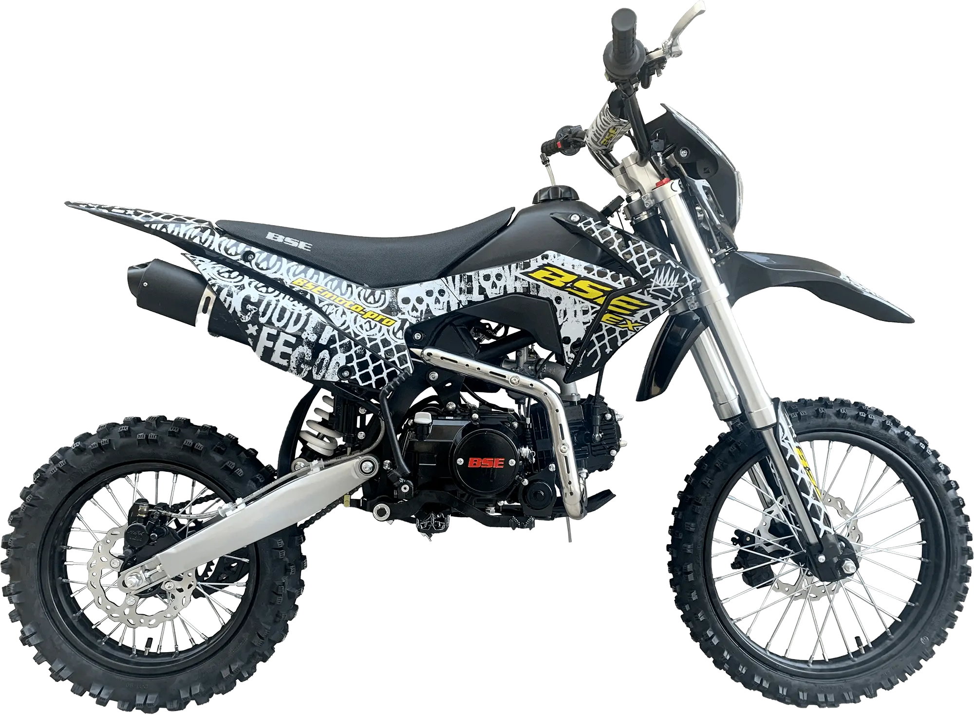 BSE EX 14/12 Max13 — это спортивный питбайк в динамичной бело-желто-черной цветовой гамме. Модель сочетает в себе агрессивный дизайн с функциональной конструкцией, ориентированной на активную эксплуатацию в условиях бездорожья. Мотоцикл демонстрирует сбалансированные пропорции и готовность к преодолению сложных участков трассы.