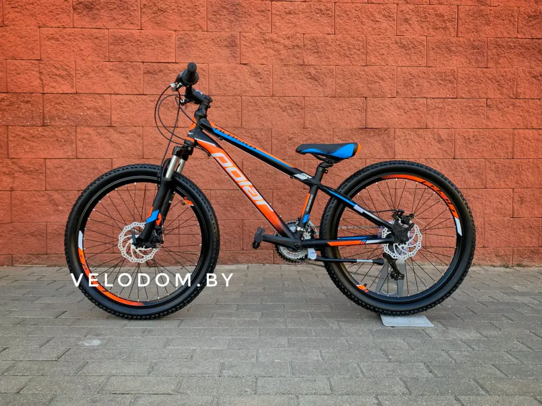 Благодаря очень удачной геометрии, ребенок легко может садиться и слезать с байка, без риска ударится о верхнюю трубу, так как она располагается максимально низко. Большой диапазон регулировки по высоте руля и сиденья делает его очень комфортным в диапазоне роста от 130см до 155см. Для большей плавности хода, и возможности быстро ехать по грунтовой дороге, спереди установили надежную амортизационную вилку. Диаметр колес составляет 24 дюйма, поэтому они отличаются повышенной прочностью.