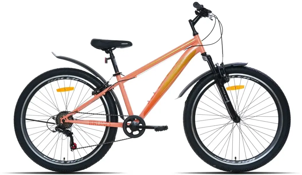 Racer Bruno с 26-дюймовыми колесами это надежный горный велосипед. Высокое качество сборки гарантирует, что велосипед прослужит долго. Основа велосипеда - рама изготовлена из стали, она прочна и надежна, такой велосипед выдерживает значительные нагрузки. А ободные механические тормоза позволят быстро остановиться, в случае необходимости.