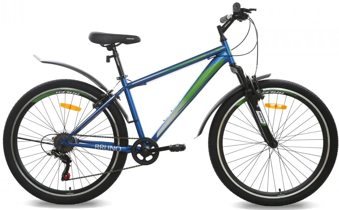 Racer Bruno с 26-дюймовыми колесами это надежный горный велосипед. Высокое качество сборки гарантирует, что велосипед прослужит долго. Основа велосипеда - рама изготовлена из стали, она прочна и надежна, такой велосипед выдерживает значительные нагрузки. А ободные механические тормоза позволят быстро остановиться, в случае необходимости.