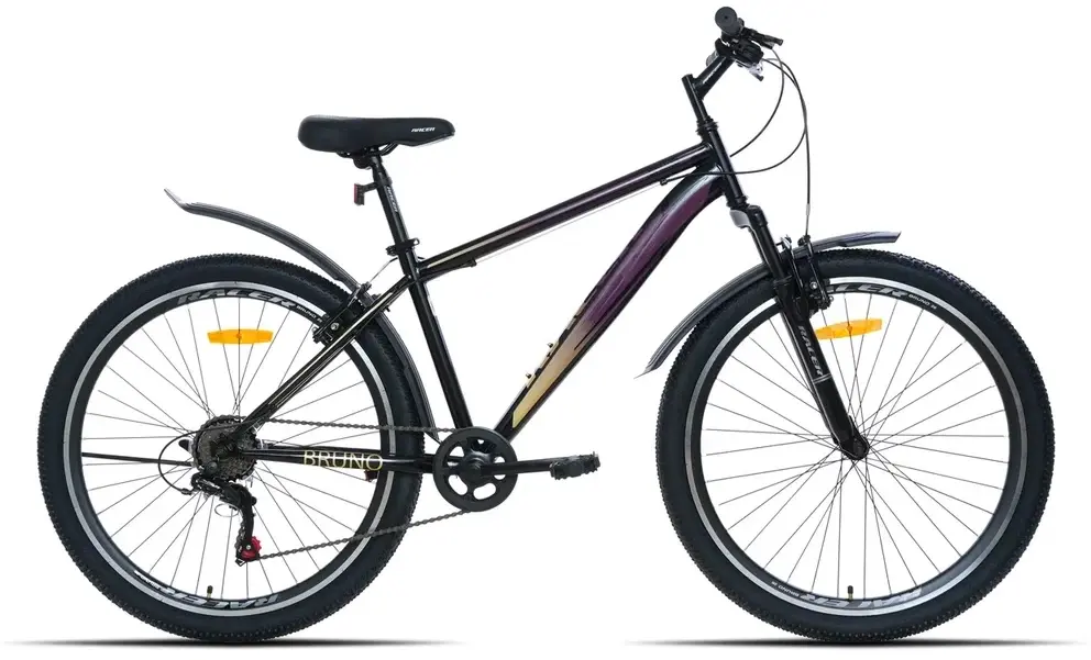 Racer Bruno с 26-дюймовыми колесами это надежный горный велосипед. Высокое качество сборки гарантирует, что велосипед прослужит долго. Основа велосипеда - рама изготовлена из стали, она прочна и надежна, такой велосипед выдерживает значительные нагрузки. А ободные механические тормоза позволят быстро остановиться, в случае необходимости.