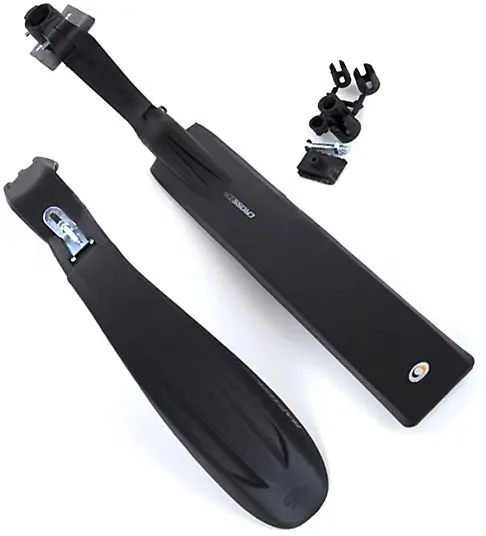 Универсальный задний щиток CROSS SDR для велосипедов с амортизаторами. Двойная система регулировки позволяют максимально корректировать положение щитка. Его большая поверхность и форма обеспечивают оптимальную защиту в разных условиях езды. Щиток имеет отполированную внутреннюю поверхность для самоочищения. Расположенный в задней части щитка светоотражающий элемент улучшает видимость и безопасность велосипедиста.
