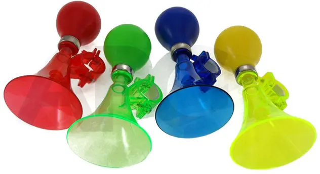 | Сигнал клаксон, прямой. Материал: трубка - пластик, груша - резиновая. Цвет: синий, зелёный, красный, жёлтый. Размер: длина трубки - 155 мм. |