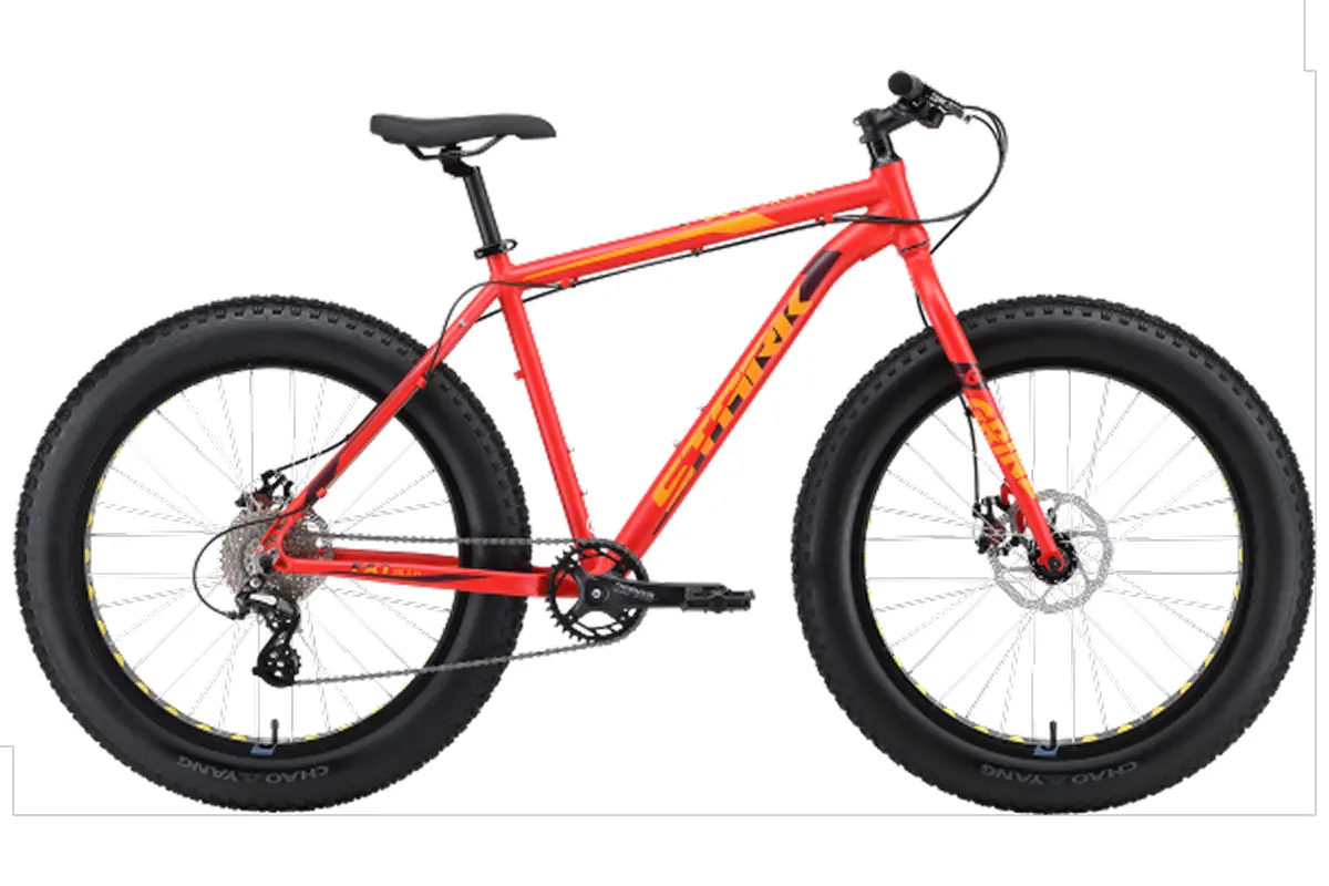Фэтбайк Stark Fat 26.3 D в цвете красный/оранжевый — это мощный и стильный велосипед, созданный для экстремальных условий и езды по сложным поверхностям, таким как снег, песок, грязь и бездорожье. Вот основные характеристики этого велосипеда: