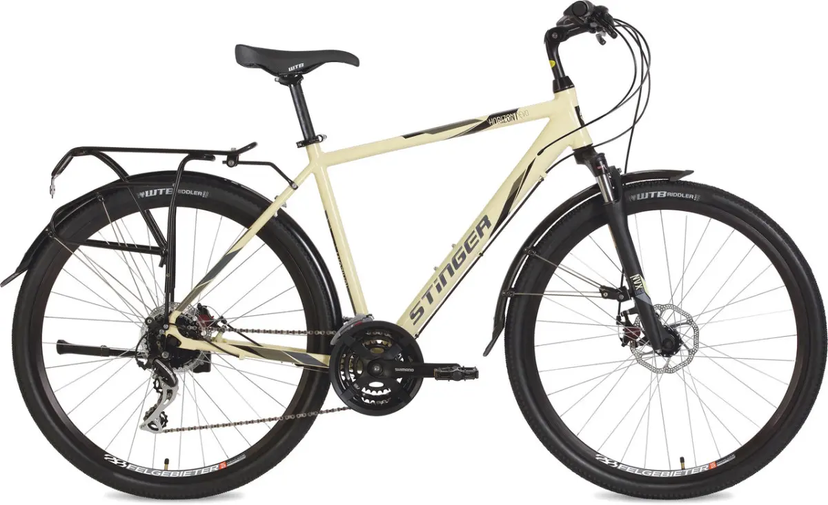 Гибридный велосипед Stinger Horizont EVO 28" оснащен лёгкой алюминевой рамой и имеет амортизацию переднего колеса, что обеспечивает улучшенный контроль и повышенный комфорт. Дисковые механические тормоза отвечают за быструю и эффективную остановку. 24 скорости на оборудовании от известного производителя Shimano.