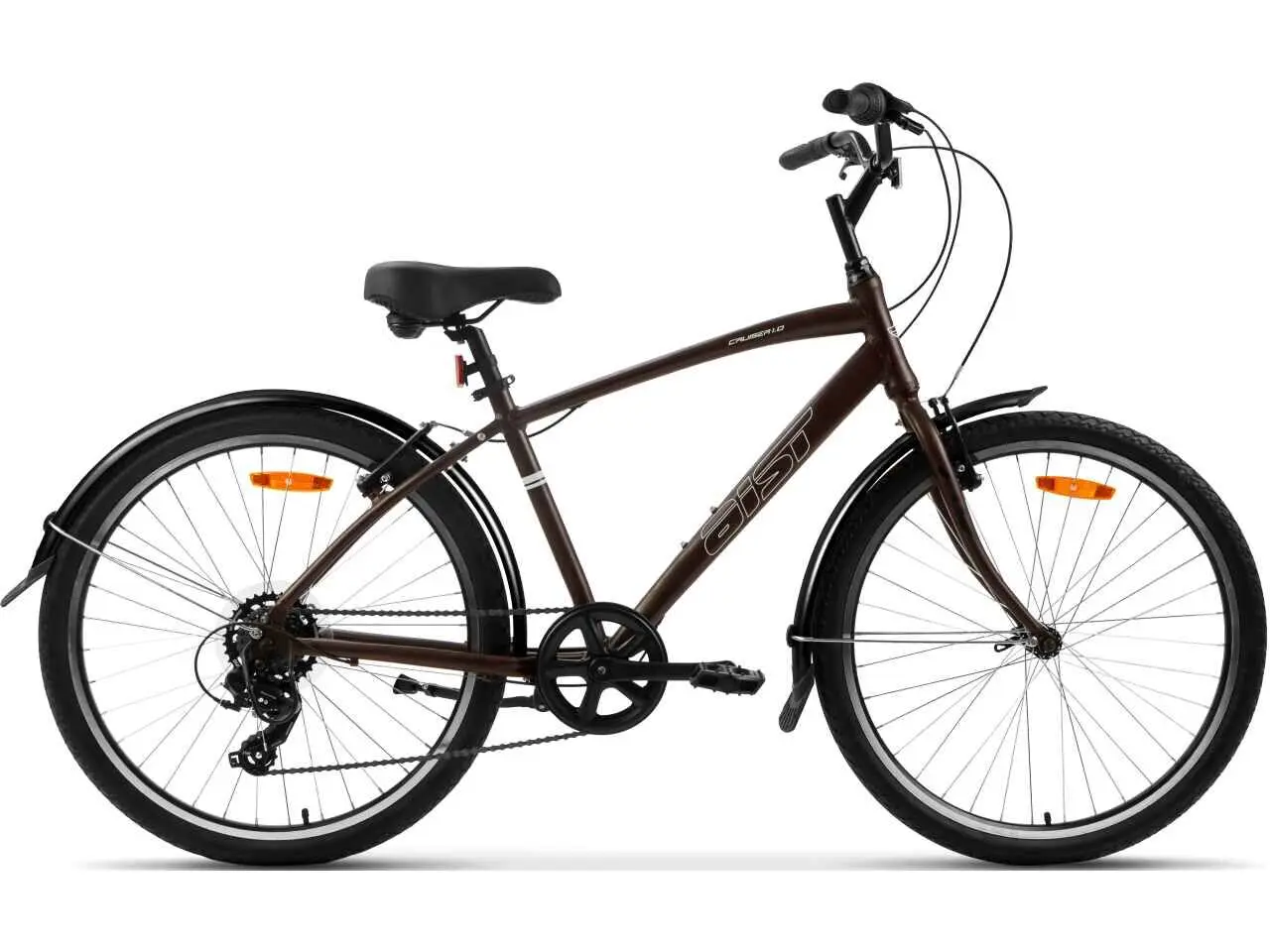 AIST Cruiser 1.0 — это классический городской велосипед, созданный для комфортного и неспешного катания. Его ключевыми особенностями являются простая и надежная конструкция, удобная вертикальная посадка и полная готовность к ежедневным поездкам в любую погоду благодаря установленным брызговикам.