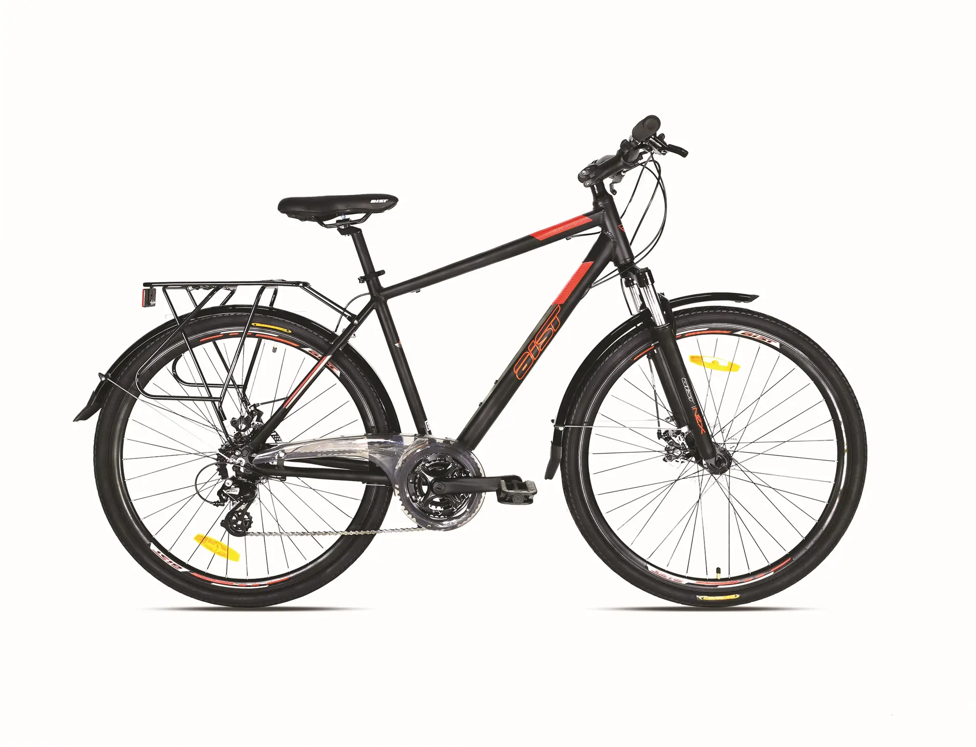 Aist Sputnik 1.1 предлагает сбалансированную комплектацию для повседневного использования. Легкая алюминиевая рама обеспечивает удобство управления и маневренность в городских условиях. 24-скоростная трансмиссия Shimano предоставляет широкий диапазон передач для комфортного преодоления подъемов и поддержания скорости на равнинных участках. Дисковые механические тормоза обеспечивают надежное торможение в различных погодных условиях. Универсальный размер колес 28 дюймов с широкими покрышками гарантирует хороший накат и комфорт при движении по различным дорожным поверхностям.