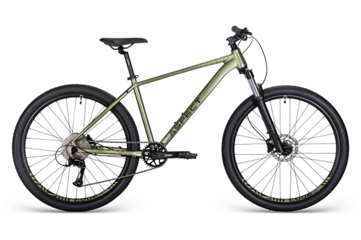 Aspect Nickel Pro 27.5 – это надежный хардтейл для любительского катания по бездорожью с хорошей гидравликой (Shimano MT200), 8-скоростной трансмиссией (Shimano Acera/Altus) и прочной алюминиевой рамой. Подойдет для прогулочного и походного использования.Цвета выглядят стильно, особенно серо-синий и зеленый варианты.