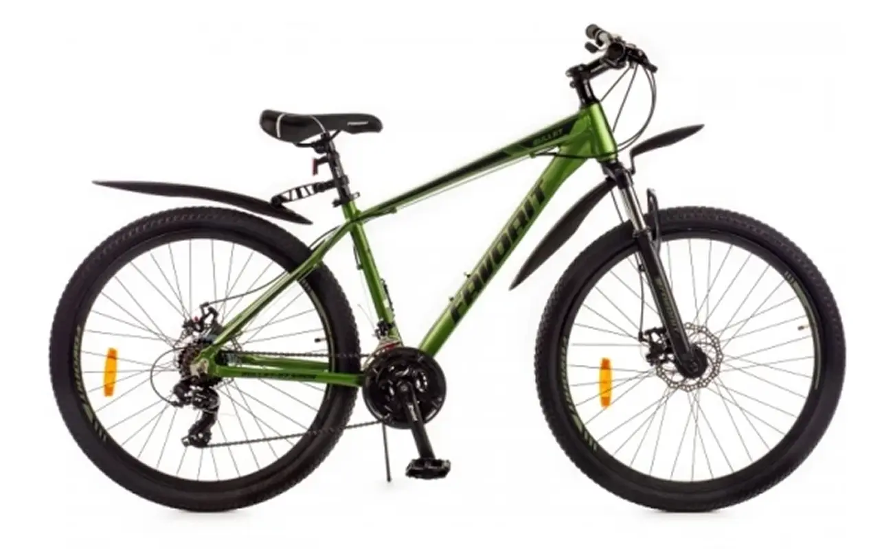 Горный велосипед Favorit Bullet 27.5 в зеленом цвете — это современный и надежный велосипед, предназначенный для активного катания по пересеченной местности и городским дорогам. Он сочетает в себе прочную конструкцию, качественные компоненты и стильный дизайн. Вот основные характеристики и особенности модели: