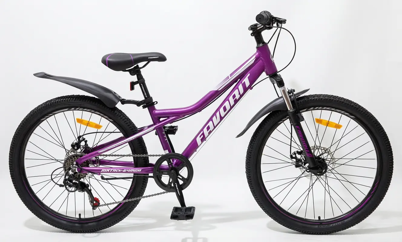 Favorit Matrix 24MD — это подростковый горный велосипед, созданный для тех, кто не любит асфальтовые ограничения. Модель построена вокруг легкой алюминиевой рамы и укомплектована компонентами Shimano. Это твой ключ к свободе: ветер в лицо, уверенный маневр между деревьями в парке и четкое переключение скоростей на любой кочке.