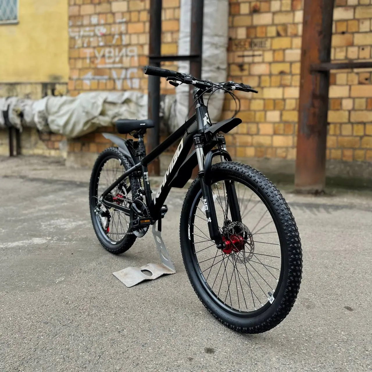 Favorit Rambo 24 — подростковый велосипед с колесами диаметром 24 дюйма, оснащенный многоскоростной трансмиссией и амортизационной вилкой.