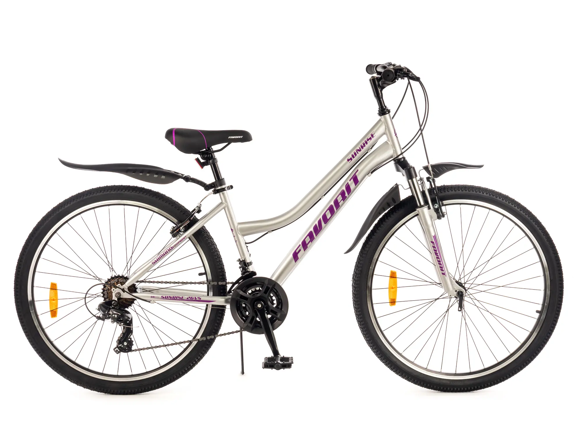 Favorit Sunrise 26VS — велосипед с диаметром колес 26 дюймов, оснащенный многоскоростной трансмиссией и амортизационной вилкой.