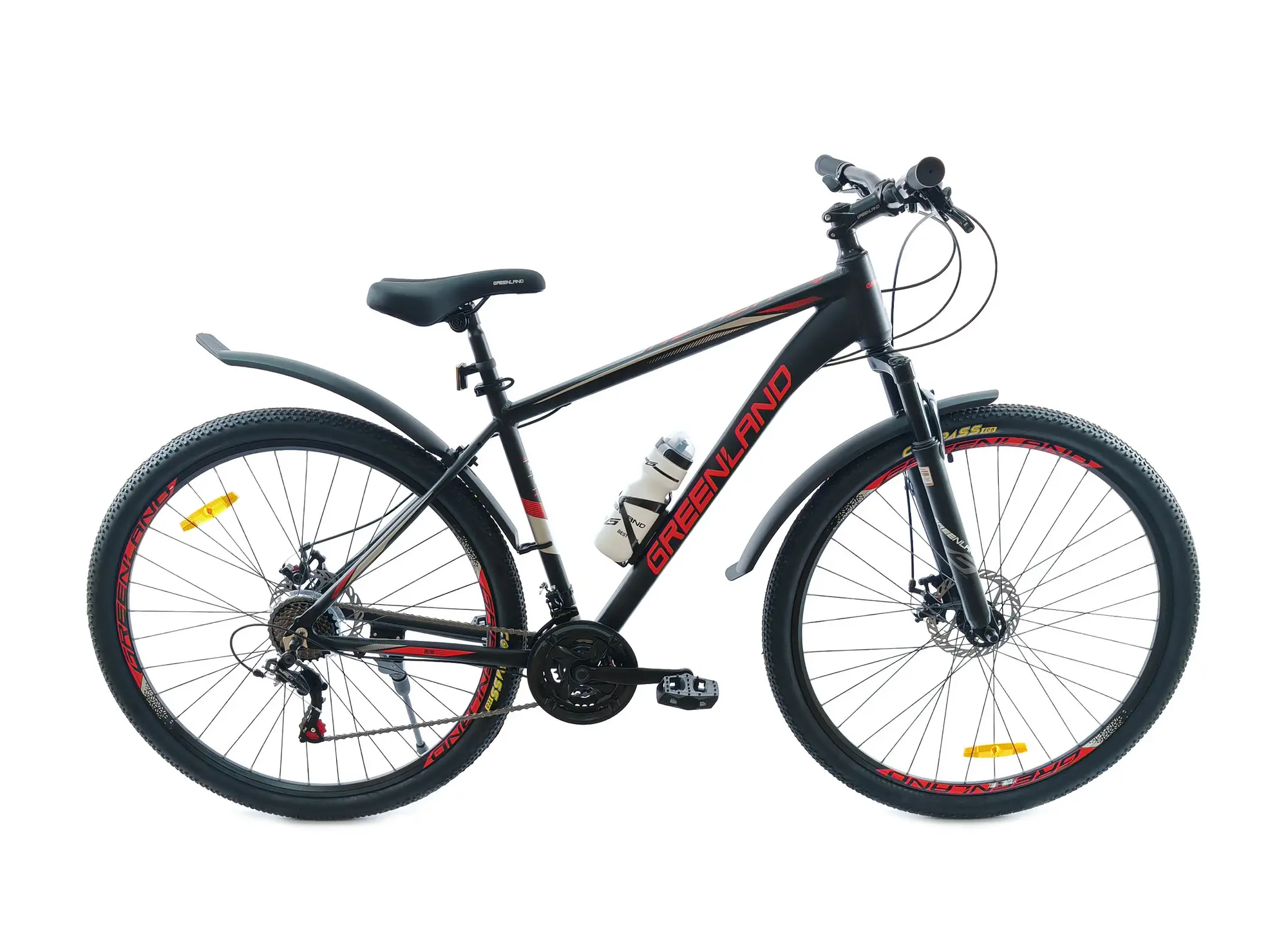 Яркий и динамичный дизайн (черный/красный, серый/желтый, черный/зеленый) подчеркнет ваш спортивный характер, а расширенная комплектация (брызговики и бутылка для воды в комплекте) позволит сразу отправиться в путь, ничего не докупая.