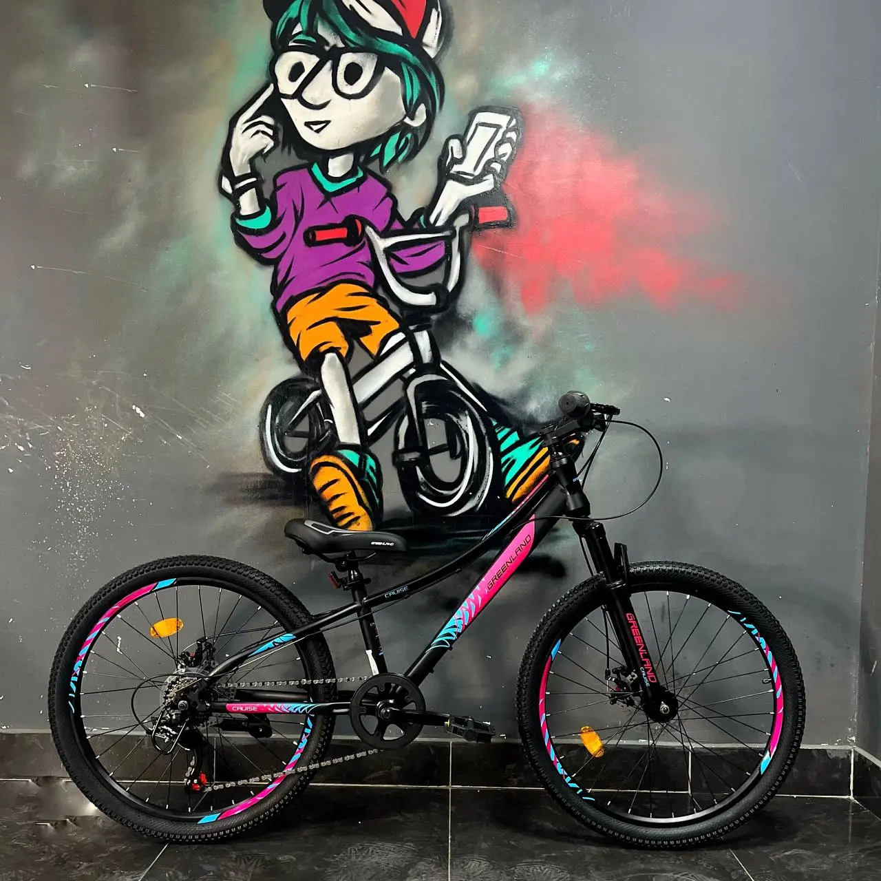 Общая концепция: Greenland Cruise 24 — это велосипед для детей и подростков, созданный для комфортного и уверенного катания в городских условиях и за пределами асфальтированных дорог. Его конструкция обеспечивает высокую надежность и стабильность.