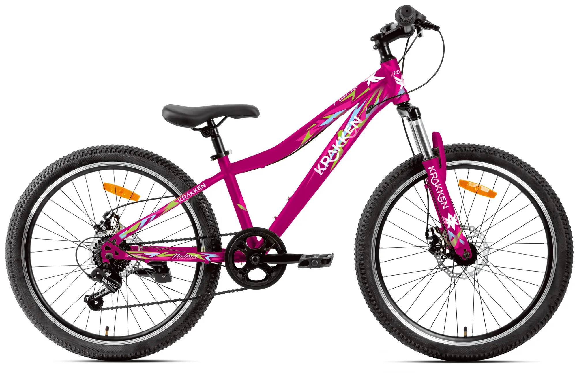 Krakken Palma — современный подростковый велосипед для активного отдыха и прогулок по различному рельефу. Модель разработана для детей 9-14 лет и сочетает в себе прочную стальную конструкцию, амортизационную вилку и многоскоростную трансмиссию для комфортного катания.