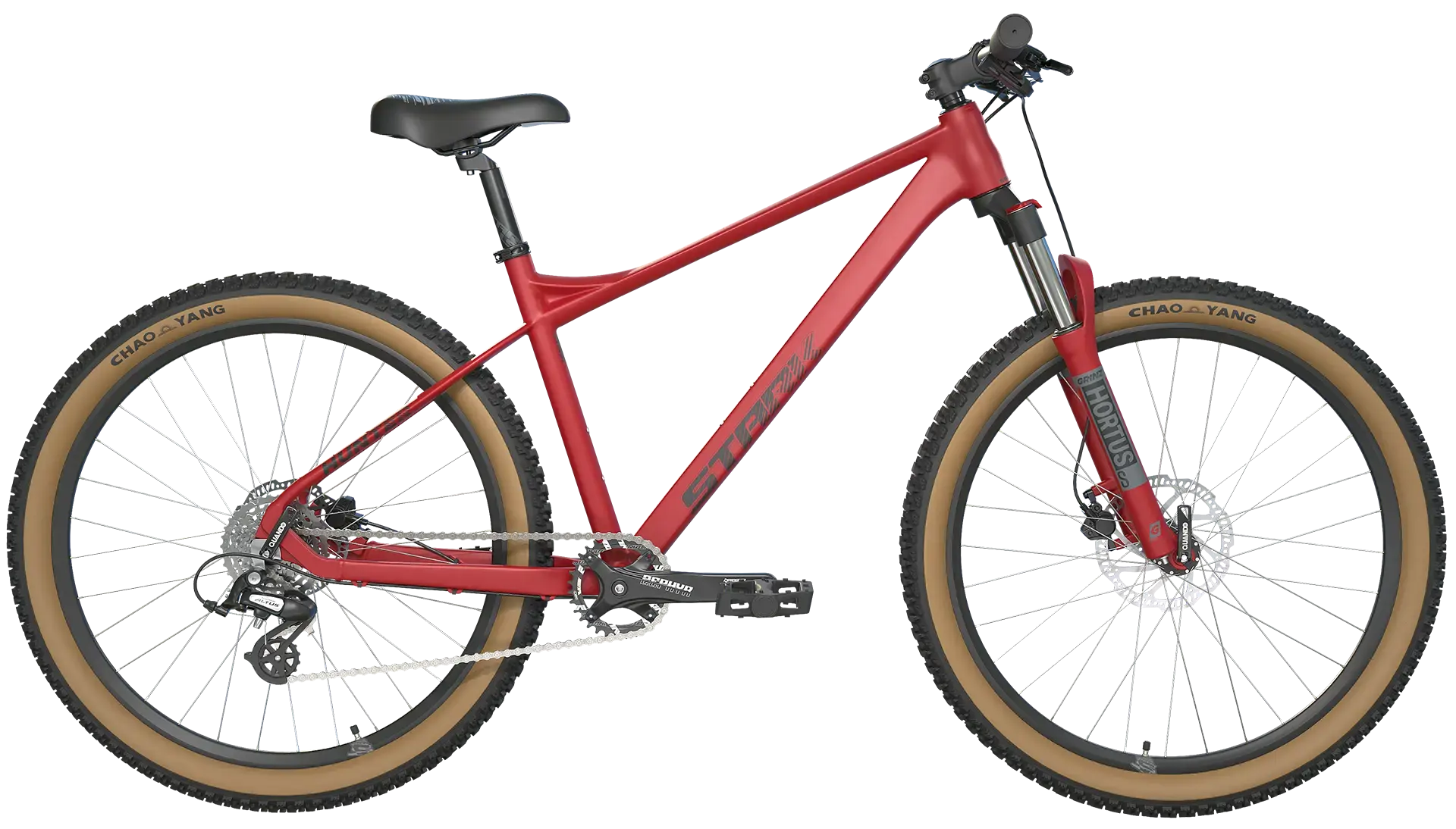 Колеса диаметром 27,5 дюймов собраны на двойных алюминиевых ободах Citron DA-26, что повышает их прочность и устойчивость к деформациям. Втулки — Solon, передняя и задняя, на двух промышленных подшипниках каждая. Покрышки Chaoyang H-5234 размером 2,2 дюйма обеспечивают уверенное сцепление с различными типами поверхностей.