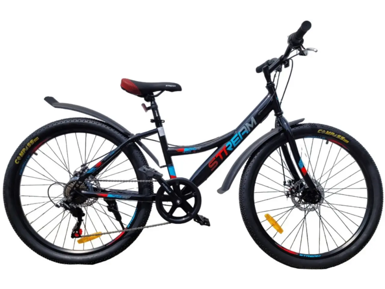 Stream Travel 24 — это самостоятельный, практичный и уверенный велосипед для подростков, готовый к ежедневным приключениям. Продуманная комплектация, включающая крылья и держатель для бутылки, надежная стальная рама, эффективные дисковые тормоза и универсальные покрышки, делает его отличным выбором для активного отдыха и повседневного использования.
